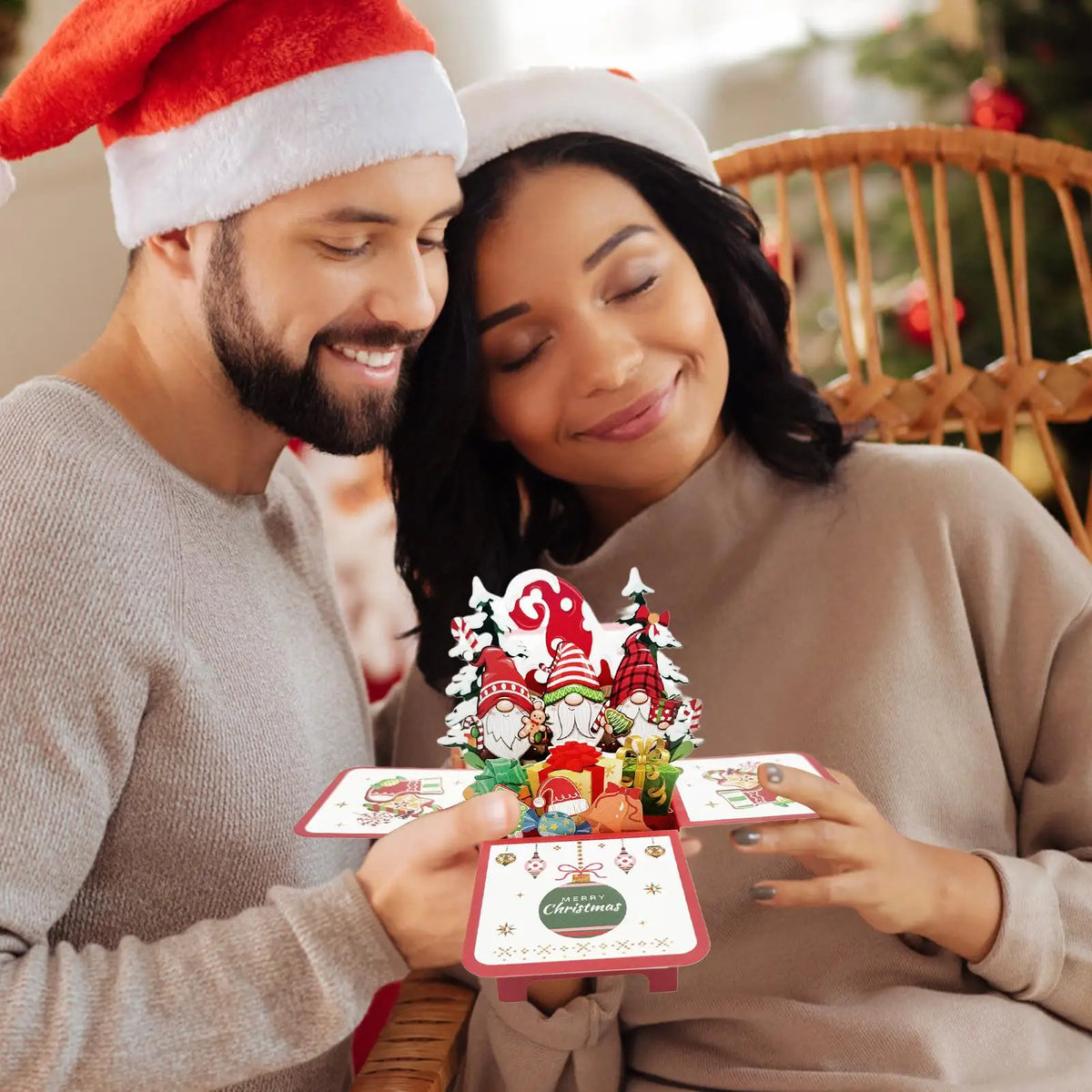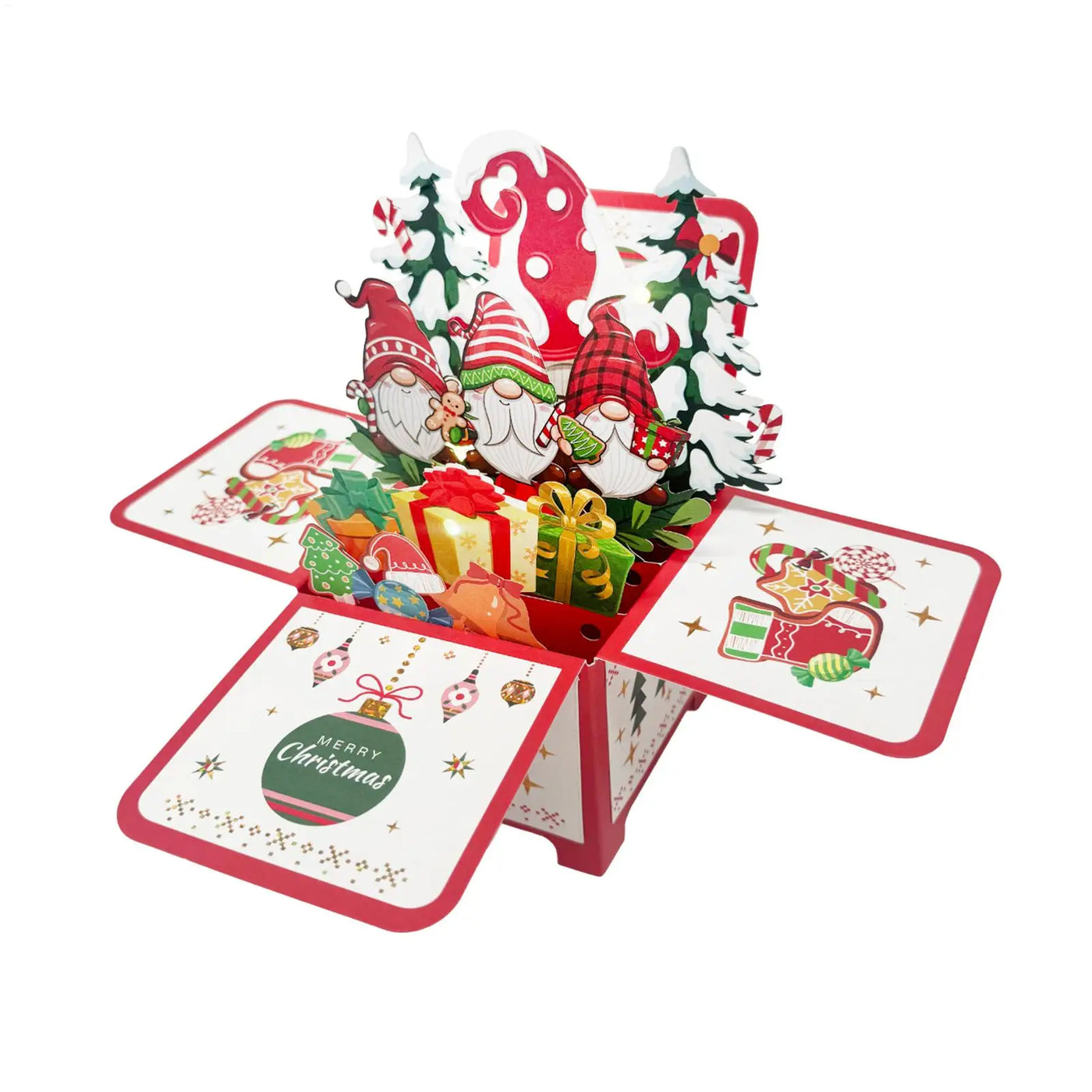 Features a festive 3D gnome design for a playful holiday touch